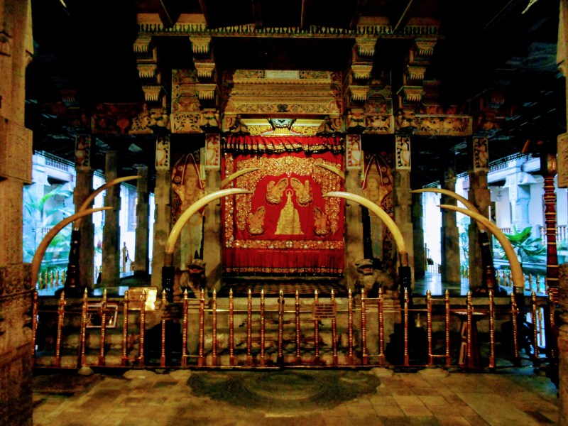 While milling about inside the temple I witnessed probably the most violent downpour I’ve ever seen. Rain storms in Sri Lanka are no joke. Bizarrely the part of the temple containing the old shrine is open to the elements and began to flood. I prayed to the tooth for either an umbrella or webbed feet.